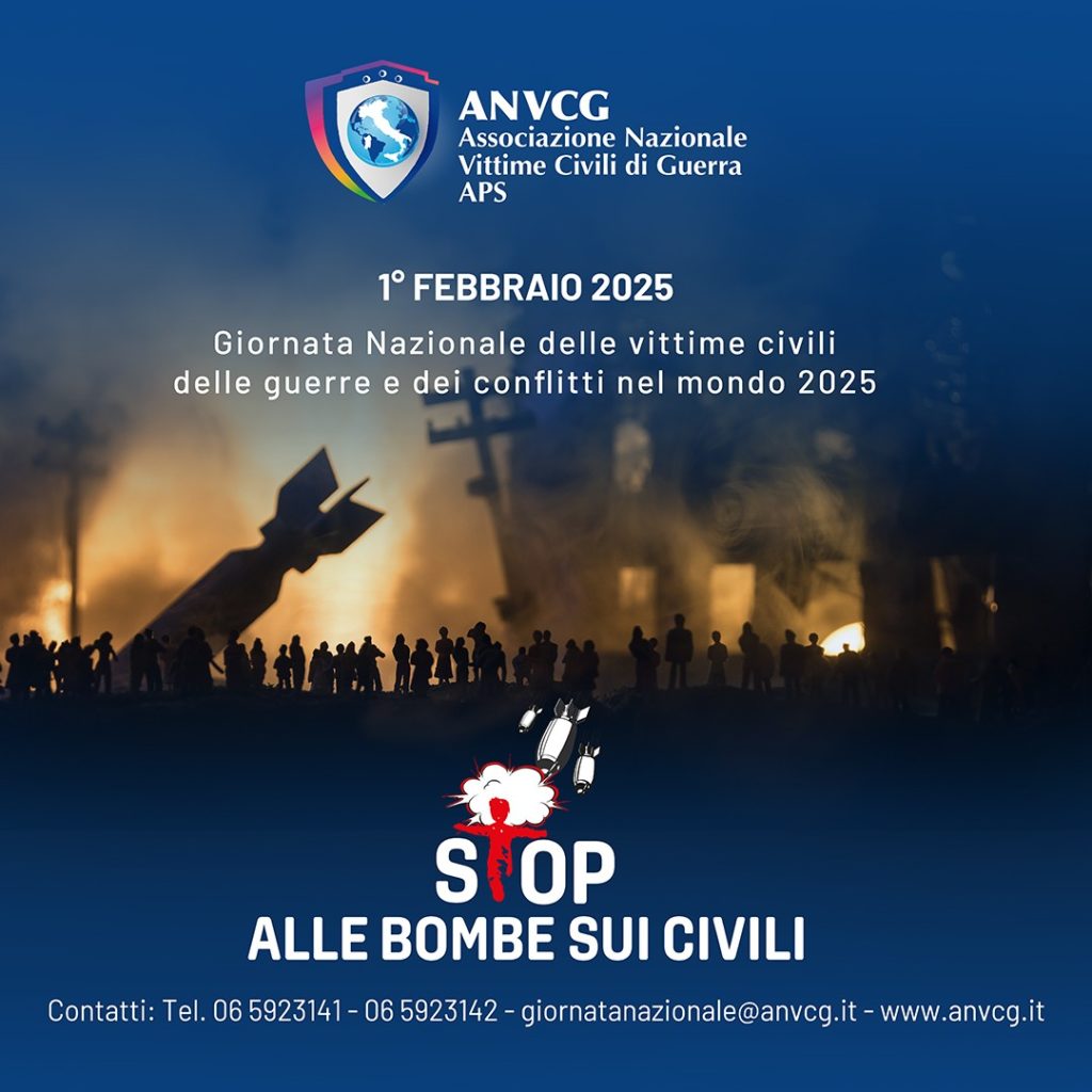 Per l’occasione ANVCG (Associazione Nazionale delle Vittime Civili di Guerra Aps) e ANCI (Associazione Nazionale Comuni Italiani) lanciano la campagna “stop bombe sui civili”.