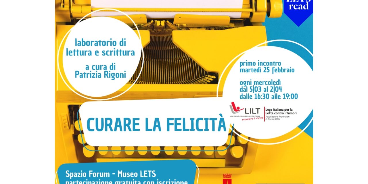 Nell’ambito delle attività del Patto di Trieste per la Lettura – che riconosce alla lettura e alla scrittura un valore sociale fondamentale, volto a migliorare il benessere individuale e dell’intera comunità – la LILT – Lega Italiana per la Lotta contro i Tumori di Trieste in collaborazione con il Comune di Trieste organizza il laboratorio di scrittura e lettura Curare la felicità per promuovere il sostegno e il dialogo tra donne e uomini che vivono e hanno vissuto la fragilità esistenziale della malattia, progetto realizzato con il contributo anno 2024 – Regione Autonoma Friuli Venezia Giulia L.R. 23/12.