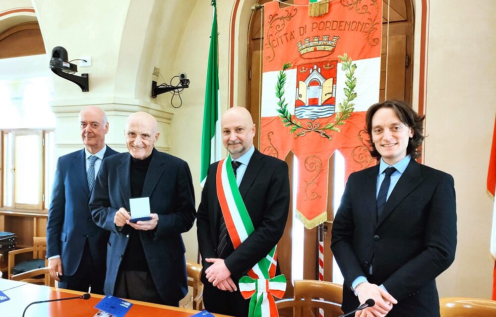 Questa sera a Salvatore Accardo verrà conferito il Premio Pordenone Musica 2024, riconoscimento internazionale istituito dal Teatro Verdi di Pordenone. Prima però l’Amministrazione comunale ha voluto omaggiare uno tra i più prestigiosi solisti della scena musicale internazionale, violinista e direttore d’orchestra di fama mondiale,con la consegna del Sigillo della nostra città.