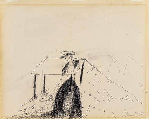 universitario. Nella scelta emerge la volontà di ricostruire un processo di elaborazione, una metodologia di lavoro: seguire passo passo – a partire dai primi schizzi, dai disegni – quella continua trasformazione e contaminazione di nuclei figu rali che si sviluppa a volte nell’arco di decenni e che lega scenografie e tele, bozzetti e incisioni.