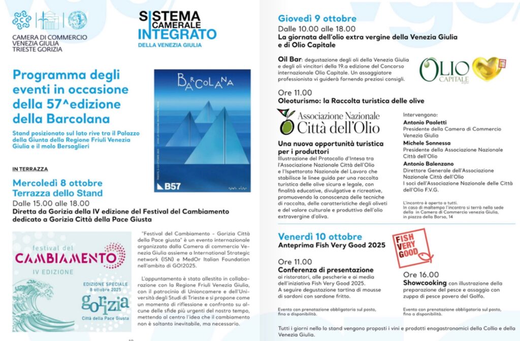 Il Sistema Camerale Integrato della Venezia Giulia organizza alcuni eventi nello stand camerale posizionato sulle rive tra il Palazzo della Giunta regionale e il molo Bersaglieri.