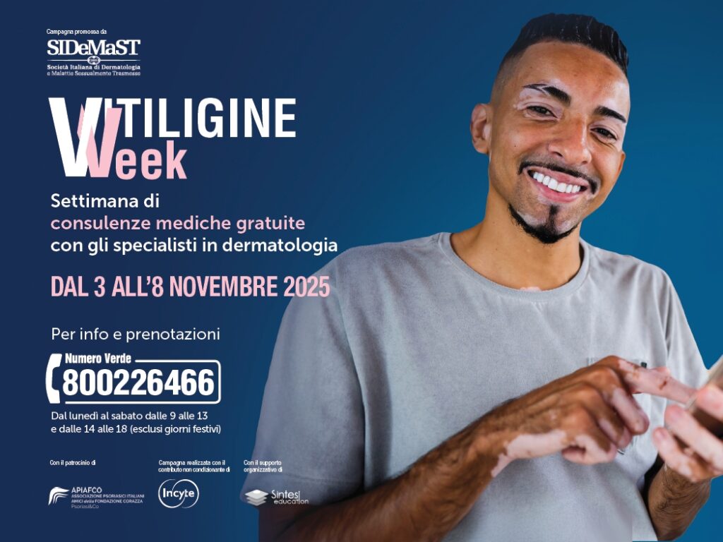 Dal 3 all’8 novembre SIDeMaST, Società Italiana di Dermatologia e Malattie Sessualmente Trasmesse, promuove la Vitiligine Week, una settimana di consulenze mediche gratuite con gli specialisti in dermatologia, dedicate ai pazienti con vitiligine, che è possibile prenotare chiamando il Numero Verde gratuito 800226466, già attivo dal lunedì al sabato dalle 9 alle 13 e dalle 14 alle 18 (esclusi i giorni festivi).