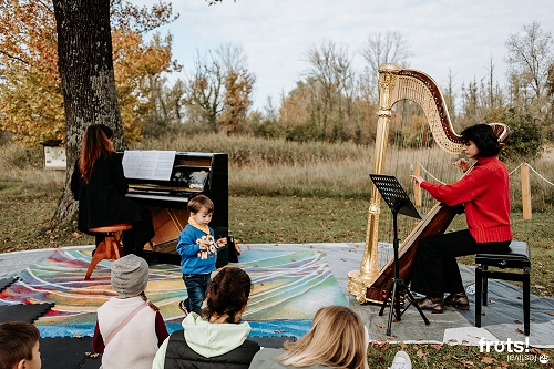 All’ombra di una grande quercia, nello spazio dell’Eco Palco, si sono alternati i concerti pop up di Aurora Meotto con il suo flauto traverso, il Duo Selene con pianoforte e arpa, e Chiara Di Gleria e Eugenio Dreas che con voce e contrabbasso hanno presentato la musica jazz del loro progetto ‘Words’.