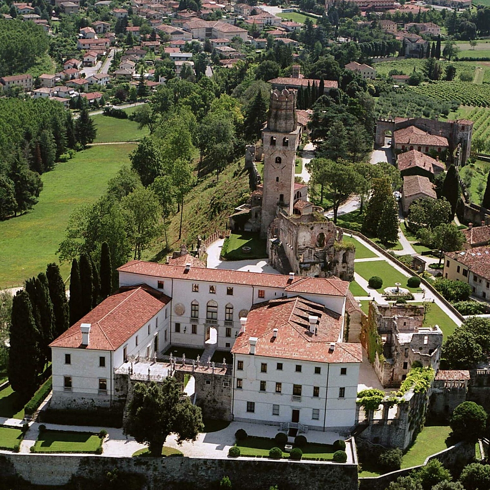 Sorto tra il XIII e il XIV secolo su un’altura che domina le colline e la valle del Piave, il Castello San Salvatore fu dapprima poderosa fortezza, poi residenza signorile e, nei secoli, elegante teatro di ospitalità e di vita di corte. Oggi, grazie alla cura e alla visione di Isabella Collalto de Croÿ, il castello si offre come simbolo di continuità fra passato e presente, ponte ideale tra la storia della Serenissima e la sensibilità contemporanea verso il paesaggio e la cultura del territorio.
