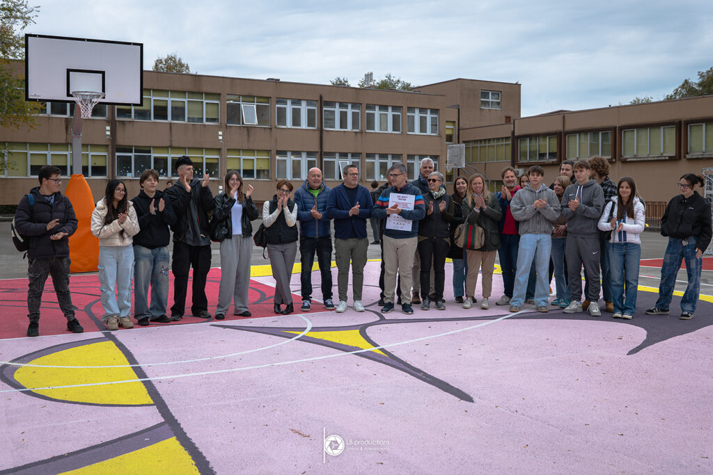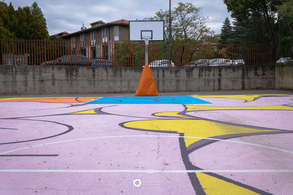 Ricordiamo che l’area oggetto di decorazione è un campo di Baskin, il basket inclusivo, fatto che rende l’intera iniziativa ancora più inclusiva e trasversale. Per la scelta della grafica da realizzare, d’imprescindibile importanza è stata la collaborazione scientifica dell’Associazione Sportiva Zio Pino Baskin, una vera e propria istituzione nel mondo del basket inclusivo. Fondamentale è stata inoltre la collaborazione da parte del partner tecnico Ivicolors che, fornendo le vernici di altissima qualità della Univer by PPG, ha reso possibile un intervento decorativo dai colori sgargianti che durerà nel tempo. Si allegano le immagini del progetto di partenza, le sue successive modifiche e alcuni scatti della realizzazione e del risultato finale.