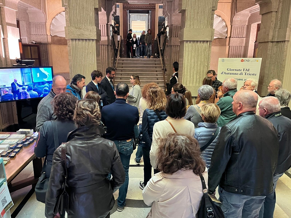 La XIV edizione delle Giornate FAI d’Autunno a Trieste si è svolta sabato 18 e domenica 19 ottobre, una settimana dopo il resto d’Italia per non sovrapporsi alla Barcolana. Le quasi 1.500 visite, ottenute grazie alla disponibilità dei volontari FAI e del personale dei beni aperti – il Palazzo della Cassa di Risparmio e il Palazzo della Banca d’Italia – portano le visite totali in Friuli Venezia Giulia ad avvicinarsi alle 9.000 unità.