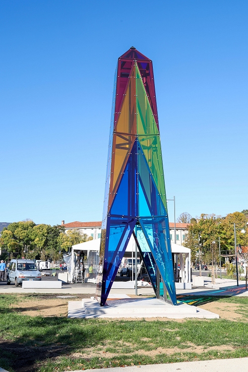 Nell’ambito del programma di GO! 2025 – Gorizia e Nova Gorica Capitale Europea della Cultura, è stato inaugurato sabato 18 ottobre, nel piazzale della Casa Rossa, GO! Pharus, un’opera d’arte pubblica, ideata e progettata da Celia Stefania Centonze, artista, designer e fondatrice dello studio di architettura e interior design Plateam di Milano.