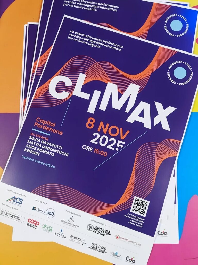 Dopo il successo della prima edizione, Climax torna al Capitol di Pordenone l’8 novembre con un nuovo appuntamento che fonde divulgazione, performance scenica e interazione con il pubblico, per riflettere sui temi urgenti della sostenibilità socio-ambientale e delle trasformazioni sociali.