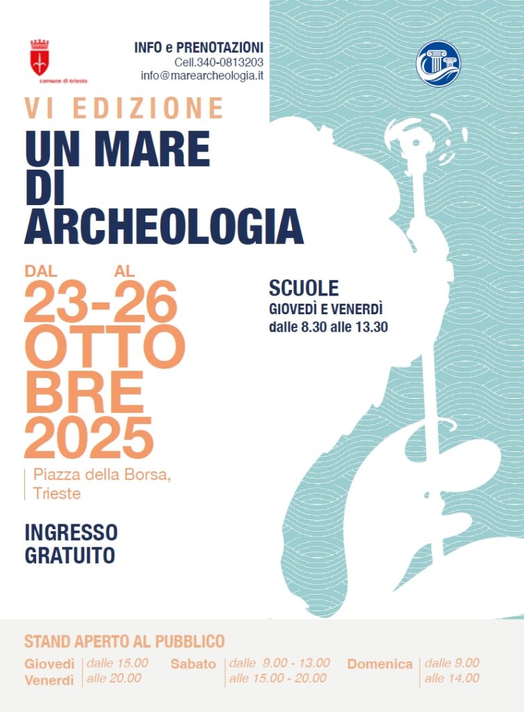 Prosegue venerdì 24 ottobre Un Mare di Archeologia, il festival archeo-storico che unisce passato e presente in un viaggio esperienziale dedicato soprattutto ai giovani che permette di rivivere il passato per comprendere il presente che fino al 26 ottobre 2025 trasformerà Piazza della Borsa a Trieste in un vivace porto di idee, suoni, esperimenti e incontri.