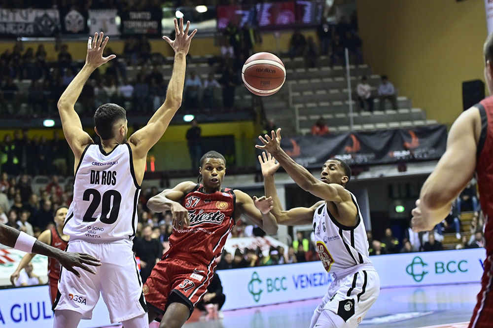 Trieste conquista la sua prima vittoria casalinga della stagione battendo Udine 92-85 in un derby infuocato e giocato a ritmi altissimi. Una prestazione di carattere, guidata da Toscano-Anderson e Sissoko, ha permesso ai biancorossi di reagire nei momenti più delicati, sostenuti da un PalaTrieste carico di entusiasmo. La squadra di coach González ha dimostrato compattezza e lucidità, soprattutto nel finale, ribaltando più volte il vantaggio ospite e portando a casa un successo prezioso e meritato.