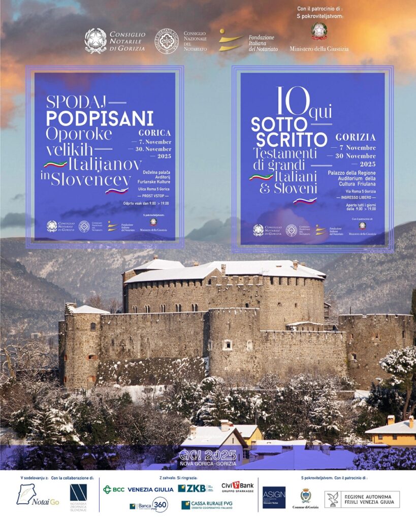 Il Consiglio Notarile di Gorizia annuncia l’inaugurazione della mostra “Io qui sottoscritto. Testamenti di grandi Italiani & Sloveni”, che si terrà venerdì 7 novembre 2025 alle ore 17.00 presso il Palazzo della Regione – Auditorium della Cultura Friulana, in via Roma 5 a Gorizia.