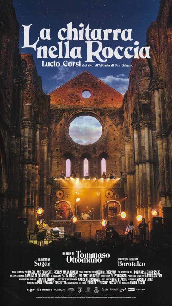 Dopo la presentazione alla 20ª edizione della Festa del Cinema di Roma, “La Chitarra nella Roccia – Lucio Corsi dal vivo all’Abbazia di San Galgano”, il film concerto diretto da Tommaso Ottomano e prodotto da Sugar, arriva in esclusiva in tutti i multisala del circuito The Space Cinema il 3, 4 e 5 novembre.