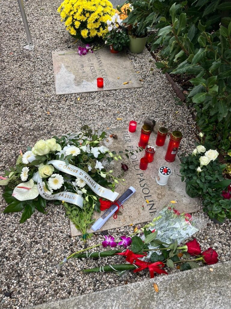 Si è svegliata sotto un cielo carico di memoria e silenzio, oggi, Casarsa della Delizia: la comunità locale, le istituzioni, amici, appassionati di Pasolini,si sono raccolti alle 10 nel cimitero del paese per ricordare i cinquanta anni dall’omicidio del poeta e intellettuale, avvenuto il 2 novembre 1975 a Ostia, e la sua sepoltura qui, il 6 novembre dello stesso anno, accanto alla madre Susanna, nel camposanto in cui riposano anche il padre Carlo Alberto e il fratello Guidalberto.