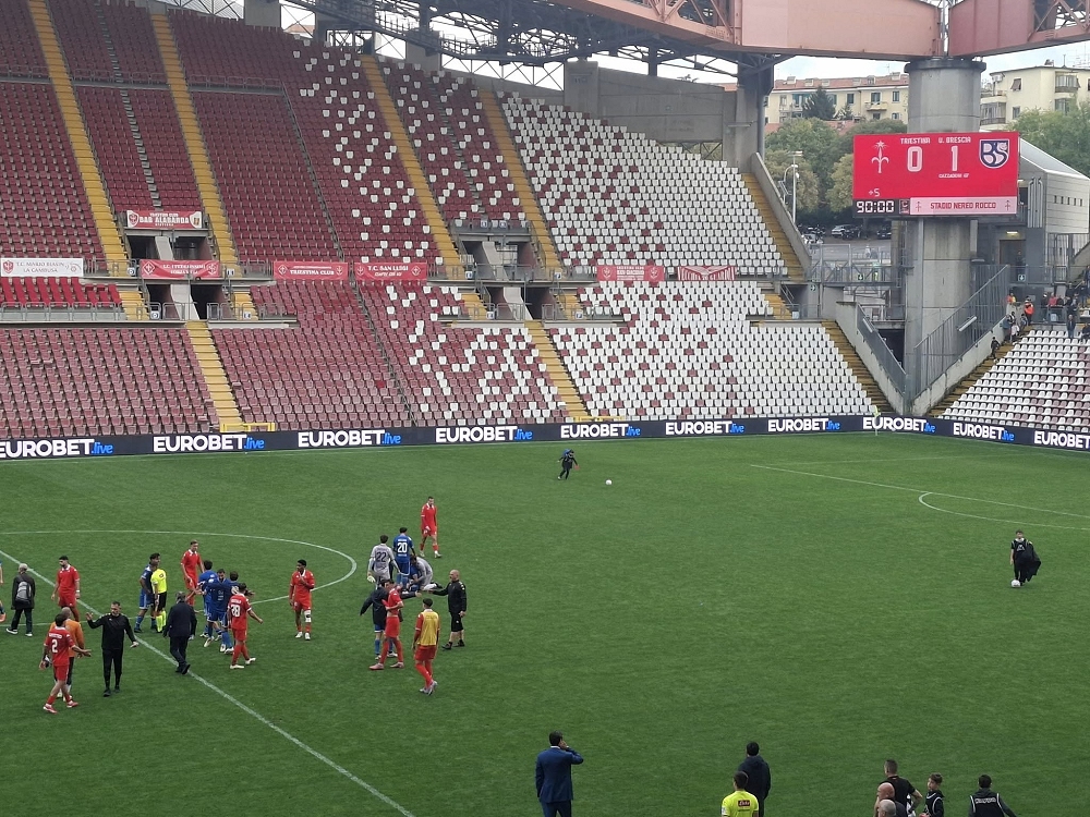 Bel tiro del bresciano Cisco di sinistro al 24°, Matosevic si salva in angolo. Rete per la Triestina di Faggioli, ma il Var corregge, rilevando un rimpallo di mano dello stesso, annullato giustamente il gol (39°).