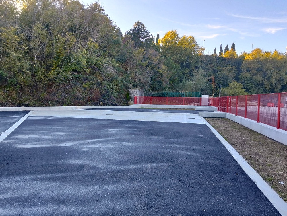 Nella prima parte del piazzale ex Alto Adriatico è stato realizzato un muro di contenimento lato monte e un fosso drenante per la raccolta delle acque che scendono dal monte e che vengono in parte convogliate verso un’area verde per la loro dispersione ed evaporazione, in parte verso la fognatura acque bianche la cui funzionalità è stata migliorata. Sono stati realizzati anche i sottoservizi, costituti dalla rete di drenaggio delle acque e dalle linee elettriche di alimentazione; e ancora inserite le alimentazioni elettriche per future utenze e allacciamenti, oltre alla pavimentazione in asfalto, mentre una parte dell’area è stata lasciata a verde.