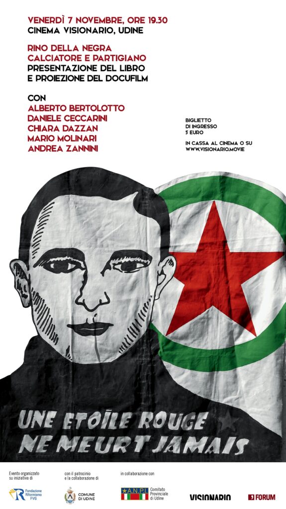 Chi era Rino Della Negra e in quali ambienti si era formato? Quali passioni, timori e speranze hanno animato il suo breve percorso di vita? Queste ed altre domande troveranno risposta venerdì7 novembre, in una speciale serata al cinema Visionario di Udine, con inizio alle 19.30. In prima per il Friuli Venezia Giulia, saranno presentati il libro degli storici Dimitri Manessis e Jean Vigreux, pubblicato in questi giorni nella versione italiana a cura di Andrea Zannini con il titolo “Rino Della Negra, calciatore e partigiano” da Forum Editrice, e il docufilm girato dai registi liguri Daniele Ceccarini e Mario Molinari “Rino Della Negra, il calciatore partigiano” (Italia, 2024), che ricostruisce la sua vicenda umana attraverso testimonianze inedite e immagini evocative. L’evento è organizzato su iniziativa di Fondazione per il Riformismo nel FVG in collaborazione con il Comitato provinciale di Udine dell’ANPI, Forum Editrice e C.E.C./Visionario, e con la collaborazione e il patrocinio del Comune di Udine. Ingresso con biglietto unico (5 euro).