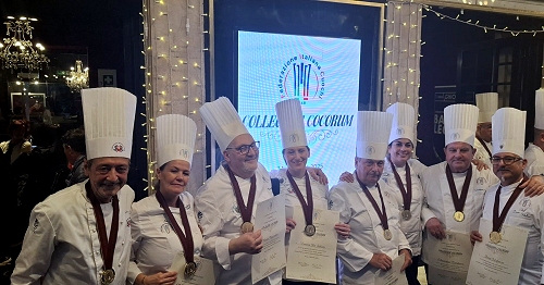 Lunedì 3 novembre, al Teatro Ghione di Roma, si è tenuta la cerimonia di consegna del Collegium Cocorum, la prestigiosa onorificenza al merito professionale conferita dalla Federazione Italiana Cuochi a chi ha dedicato oltre 25 anni all’Arte Culinaria, portando alto il nome e il prestigio della cucina italiana.