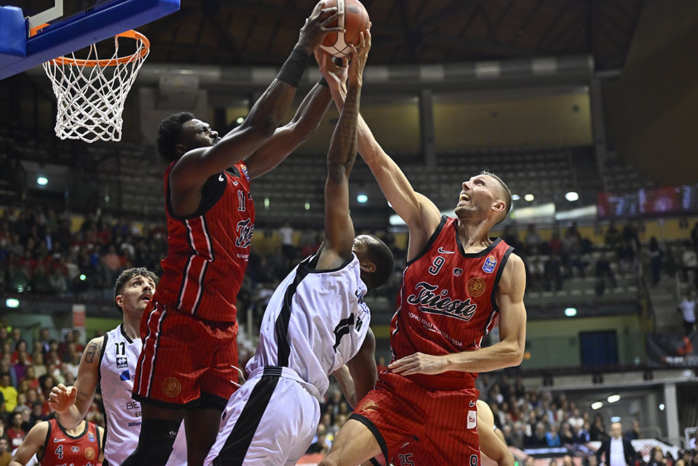 Nel secondo quarto Trieste rientra con Ruzzier, Deangeli, Moretti, Brown e Candussi. Moretti sblocca la squadra con un canestro dalla media, poi Candussi colpisce dall’arco per dare fiducia ai suoi. L’energia di Deangeli in difesa contagia i compagni, Brown subisce fallo e converte due liberi, mentre Ruzzier si prende responsabilità e segna una tripla in step-back che accende il PalaTrieste. Dall’altra parte Hubb e Gorham tengono a distanza Tortona, ma Trieste gioca con maggiore fluidità: Moretti va in lunetta e segna, Sissoko domina a rimbalzo e appoggia due punti importanti. Vital trova la tripla per Tortona, ma Uthoff risponde con la stessa moneta. Moretti continua a incidere, conquistando tre liberi e realizzandoli con freddezza. Negli ultimi minuti Trieste rosicchia punto su punto e chiude il primo tempo con fiducia e ritmo ritrovato sul 41-43.