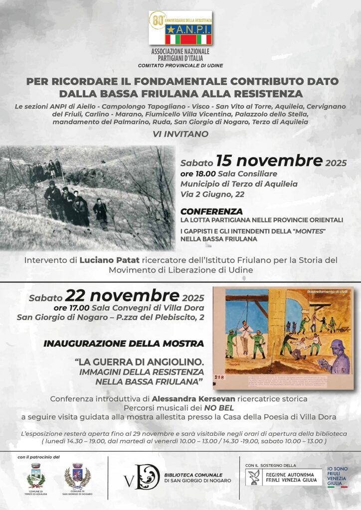 L’appuntamento, patrocinato dal Comune di San Giorgio di Nogaro, è organizzato dalle sezioni Anpi di Aiello, Campolongo Tapogliano, Visco, San Vito al Torre, Aquileia, Cervignano del Friuli, Carlino, Marano, Fiumicello, Villa Vicentina, Palazzolo dello Stella, mandamento del Palmarino, Ruda, San Giorgio di Nogaro e Terzo di Aquileia, con il sostegno della Regione Friuli Venezia Giulia.