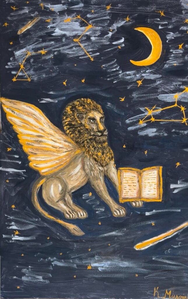 Arriva il momento della mostra, l’opera di Katia – il leone di San Marco – viene acquistato a 100 euro. Una conquista artistica e personale.