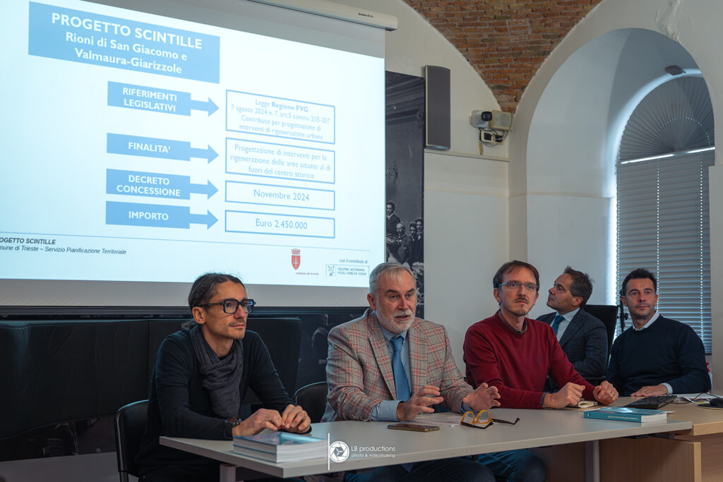 Il punto sullo stato di avanzamento del “Progetto Scintille” è stato fatto oggi nel corso diuna conferenza stampa tenuta presso la Sala Bazlen di Palazzo Gopcevich dall’Assessore alle Politiche del Territorio, Michele Babuder con Eddi Dalla Betta, Direttore, e Maurizio Suc e Alberto Menegante del Servizio Pianificazione Territoriale del Comune di Trieste -che sono entrati nel dettagliodel progetto illustrandolo anche con l’ausilio di alcune slide (allegate) – alla presenza delConsigliere regionale Claudio Giacomelli e del Consigliere comunale Alberto Polacco.