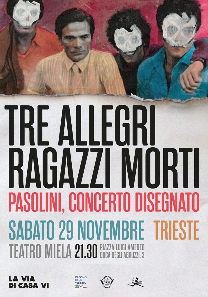 “Un modo unico di incontrare Pasolini a 50 anni dalla sua uccisione e i Tre allegri ragazzi morti al loro ritorno sui palchi indoor.
