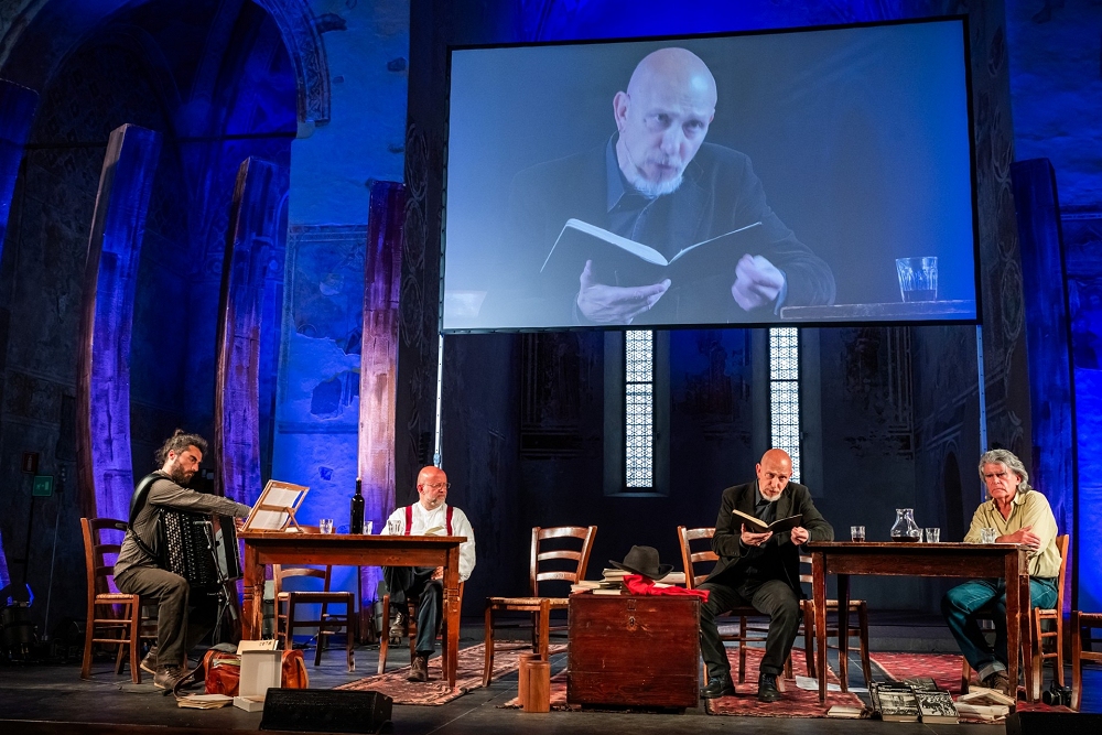 Sergio Cocetta si arruolò nella Resistenza a 18 anni. Prese il nome da partigiano di Cid. Divenne commissario politico del Battaglione Gregoratti. A guerra finita, riparò a Praga. Per lui la lotta per gli ideali partigiani non era conclusa. Dopo durissime vicende umane e politiche, alla fine degli anni ’50 rientrò in Friuli. Fu artista e scultore, anche se amava definirsi semplicemente scalpellino. Rimase partigiano a vita. Danilo De Marco, che lo conobbe a Tarvisio quand’era bambino e poi continuò a frequentarlo fino alla sua morte, ne ha raccolto gli scritti. È andato a cercarli tra cantine e vecchie case abbandonate. Quaderni sdruciti dal tempo e foglietti di tutti i tipi. Insieme ad Angelo Floramo li ha riuniti in un prezioso volumetto, “Cantata per il Cid”, edito da Forum e nato insieme allo spettacolo. “Raccontare uno che fu maestro senza chiederlo – scrive Angelo Floramo nella prefazione – non è facile. (…) Allora abbiamo pensato che la cosa migliore fosse quella di lasciar parlare lui. Il testo nasce dalla meticolosa giustapposizione di quei frammenti. Li abbiamo disposti a tessera di mosaico, con pazienza, con attenzione, in punta di piedi, con rispetto e pudore. Le altre parole, che con queste intessono tele di dubbi, reminiscenze, ricordi, emozioni, sono quelle di Danilo. Che idealmente parla con quel maestro. Lo chiama, lo interroga. Non per illuminare il tempo che è andato, ma questo nostro, drammatico e privo di speranza”.