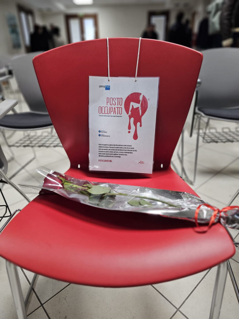 Lunedì 1 dicembre, alle ore 10:00, presso la Sala Atlante della sede di Palmanova, alla presenza del Direttore Generale di Arpa FVG, Anna Lutman, del Direttore Tecnico Scientifico di Arpa FVG, Fulvio Stel, e della Presidente del CUG dell’Agenzia Chiara Suraci, è stata collocata una sedia rossa, simbolo della campagna, che resterà per sempre riservata a una donna vittima di violenza. Un gesto semplice ma di grande valore, che ha rappresentato un momento di riflessione condivisa per tutto il personale.