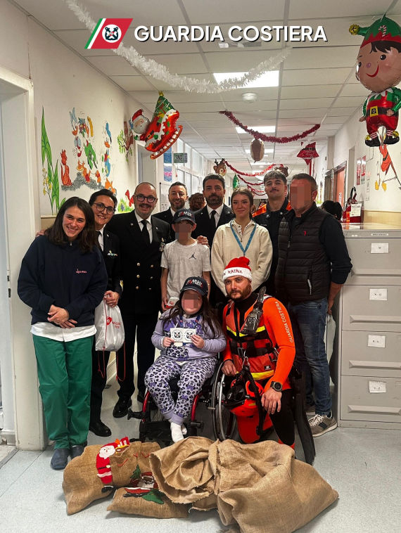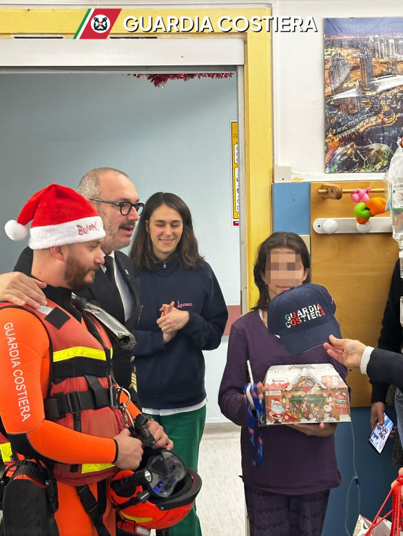Durante l’incontro, un rescue swimmer della Guardia Costiera, in tenuta operativa e con l’immancabile cappellino di Babbo Natale, ha donato ai piccoli pazienti doni e gadget, trasmettendo loro gioia e serenità.