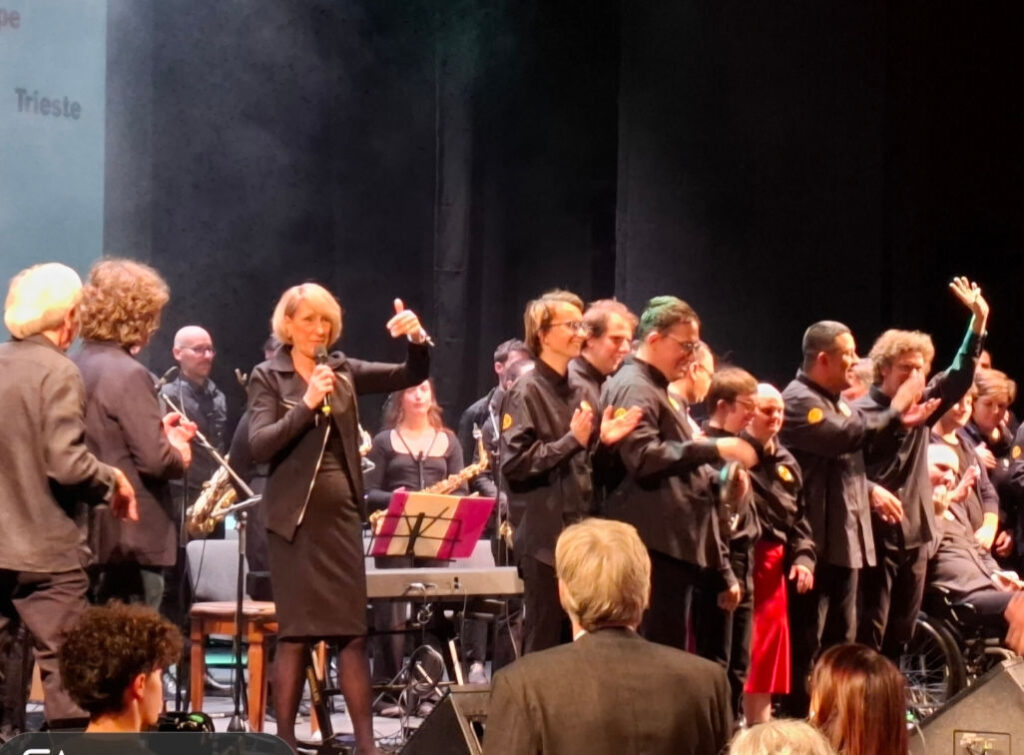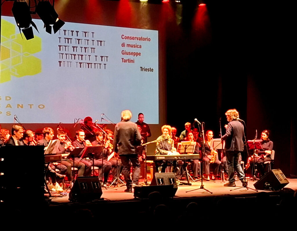 In occasione della Giornata internazionale delle persone con disabilità, la Calicanto Band e l’Orchestra jazz del Conservatorio Tartini di Trieste, si sono esibite sul palco del teatro La Contrada in un concerto all’insegna della musica integrata, che ha riscosso un grande successo, tanto da indurre il numeroso pubblico a chiedere il bis, e i ragazzi lo hanno concesso con una grande interpretazione di “Vengo anch’io” di Enzo Iannacci.