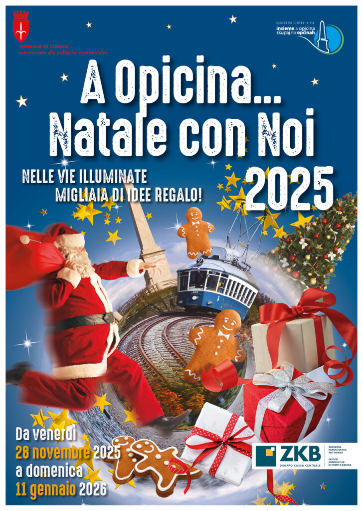 “A Opicina… Natale con noi 2025” è promosso dal Consorzio Centro in Via – Insieme a Opicina – Skupaj na Opčinah in collaborazione con il Comune di Trieste e la II Circoscrizione Altipiano Est e grazie al contributo di Confcommercio, Terziaria Trieste e Banca di Credito Cooperativo del Carso-Zadružna Kraška Banka.