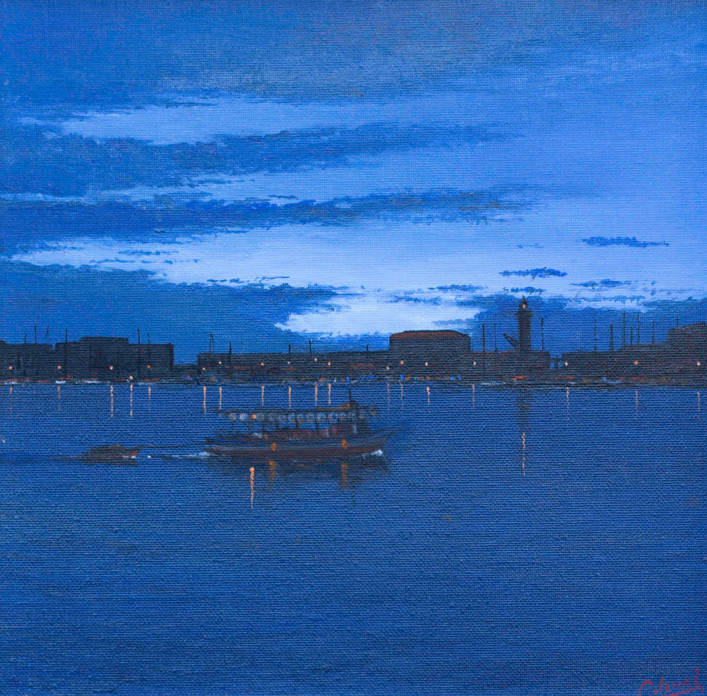 Maestro del contrappunto luministico – scrive Accerboni -, Fabio Colussi sa ricostruire con delicata e calibrata vena lirica il fascino di Trieste, di Venezia e del loro mare. La medesima, sottile inclinazione neoromantica, intrecciata a una personale e sensibilissima vena cromatica e a una grande abilità tecnica, caratterizza le sue vedute. Così l’artista sa descrivere gli incantati tramonti e le albe che sorgono nel golfo di Trieste e catturare l’ineffabile e magica luce della Serenissima e la pace della laguna, consegnandoci un angolo di mondo, in cui poter sognare ancor, grazie al prezioso virtuosismo di questo poeta del paesaggio. Memore di una vena neoclassica, che appartiene culturalmente a Trieste, sua città d’origine, l’artista prosegue in modo del tutto personale l’antica tradizione di pittori e vedutisti attivi a Venezia nel ‘700 quali Francesco Guardi e Canaletto, vicino al primo per ispirazione poetica e al secondo per l’interpretazione più razionale dei luoghi. Ma, agli esordi, Colussi ha guardato anche ad altri artisti, in questo caso giuliani, come Giuseppe Barison, Giovanni Zangrando, Ugo Flumiani e Guido Grimani, tutti in un modo o nell’altro legati alla grande tradizione pittorica e coloristica veneziana, che rappresentava un importante punto di riferimento, nel secondo Ottocento e nel primo Novecento, accanto all’Accademia di Monaco, per i pittori triestini.Altro fulcro fondamentale fu infatti per loro anche la cultura austro-tedesca. E non a caso nelle opere di molti di questi, così come in quella di Colussi, compare spesso una luce azzurro-grigia, che più che un colore rappresenta un’atmosfera, una sorta di evocazione di quello “sturm und drang” (tempesta e impeto), che nel mondo germanico pose le basi del Romanticismo: punti di riferimento che costituiscono delle interessanti chiavi di lettura della pittura dell’artista triestino, in particolare per quanto riguarda la sua interpretazione del tema della veduta marina, che Colussi sa rivisitare attraverso intuizioni, luminosità e ispirazioni che alludono istintivamente anche alla cultura visiva mitteleuropea. Dotato di un talento naturale, che ha saputo coltivare nel tempo con passione e tenacia, Colussi è riuscito a delineare una propria maniera intensa e precisa ma nel contempo sobria, essenziale e sottilmente poetica. Che fa vivere il paesaggio soprattutto della luce (diurna o notturna che essa sia), ottenuta attraverso ripetute e raffinate velature e un cromatismo deciso ma morbido.