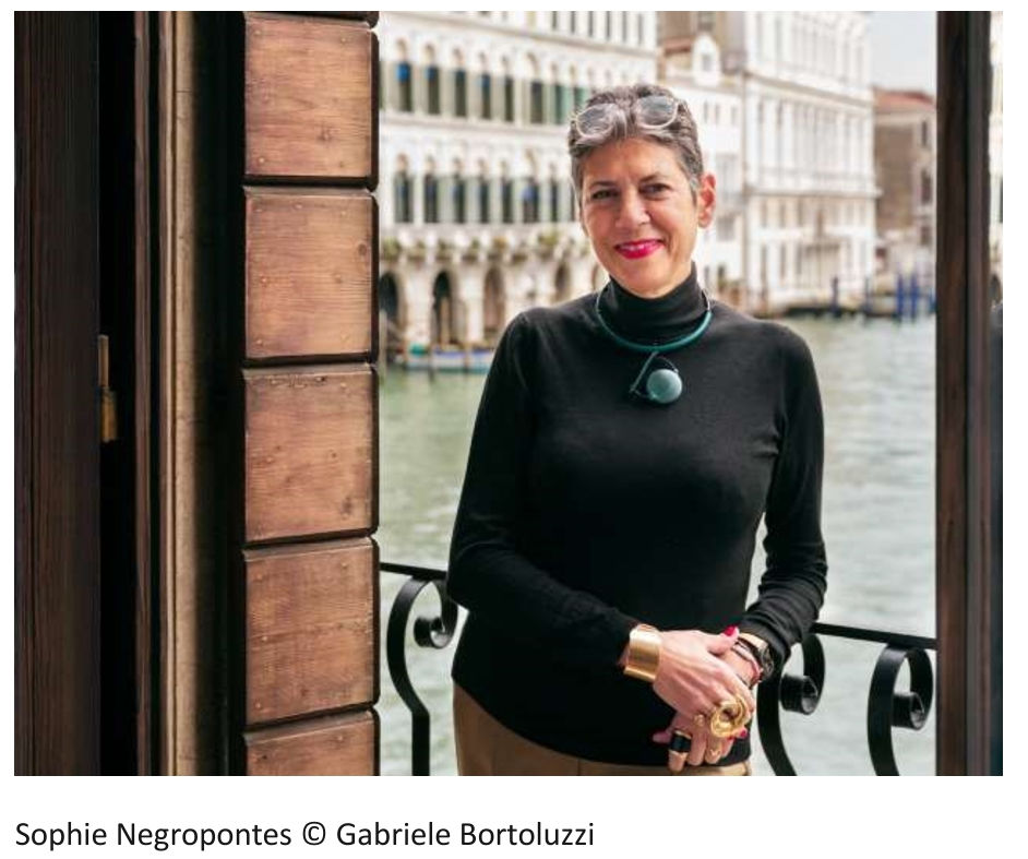 Nel suo approccio culturale, la Galerie Negropontes pubblica libri d’artista al fine di sostenere e promuovere la loro opera. Questi volumi mirano a mettere in luce la pertinenza del loro percorso artistico. Nel 2019, in collaborazione con Xavier Barral, la galleria ha pubblicato Brancusi, un libro di fotografie di Dan Er. Grigorescu sull’opera dell’omonimo artista. Più recentemente, nel 2024, il libro Perrin & Perrin è stato pubblicato da Atelier EXB come omaggio alla carriera di questo singolare duo di artisti.Il restauro e la valorizzazione della Palazzina Masieri a Venezia, in collaborazione con lo IUAV e Ham Benefit, rappresentano un altro capitolo entusiasmante per la galleria. La collaborazione con lo IUAV e con gli architetti Roberta Bartolone e Giulio Mangano ha segnato una ristrutturazione di grande rilievo. La scelta di creare mostre curate e di organizzare eventi importanti annuncia la rinascita della Palazzina Masieri come centro per l’arte e l’apprendimento. Aperta nel marzo 2024, la Palazzina ospita una mostra artistica inaugurale che presenta le opere di una dozzina di artisti sostenuti dalla Galerie Negropontes. Questo progetto offre una piattaforma di scambio e di trasmissione dell’arte e del sapere, preservando così lo spirito della Fondazione Masieri. Sophie Negropontes © Gabriele BortoluzziA proposito di Sophie Negropontes Fondatrice e direttrice dell’eponima galleria, Sophie Negropontes vanta un ricco percorso caratterizzato da una diversità culturale e professionale che si riflette nella sua visione artistica.Nata in Romania e di origine greco-rumena, Sophie Negropontes cresce in un ambiente stimolante, immersa nella fotografia grazie a suo padre, autore di numerosi volumi d’arte e produzioni televisive. Fin dalla più giovane età, Sophie Negropontes sviluppa una passione per l’arte, alimentata dalla frequentazione di artisti provenienti da orizzonti diversi e dalle visite a musei prestigiosi come il Prado. A dodici anni si trasferisce in Francia, dove qualche anno più tardi intraprende un percorso di studi in una scuola di commercio. La lingua francese diventa parte integrante della sua identità, così come il suo interesse per i viaggi e le interazioni sociali.Nel 1988, Sophie Negropontes prosegue la sua carriera a Hong Kong, dove lavora in diversi settori quali la profumeria, il marketing, il commercio e la regolamentazione dei prodotti di lusso. Tornata in Francia, entra a far parte del gruppo Mulliez come responsabile del dipartimento immagine.