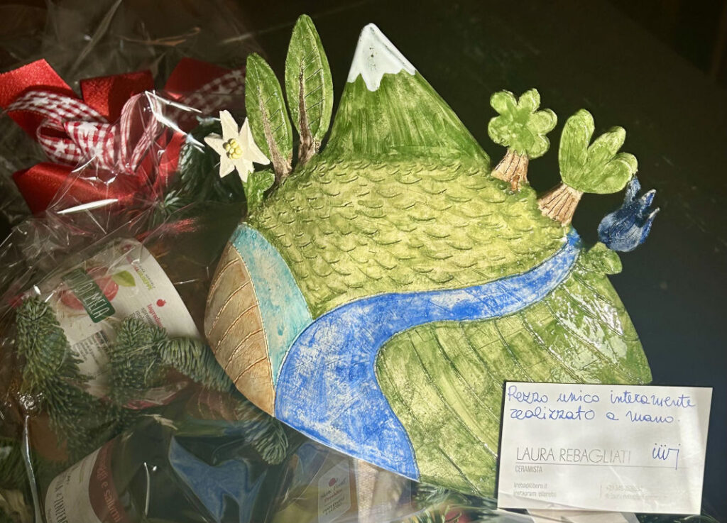Il riconoscimento consiste in un’opera artistica realizzata in ceramica, pezzo unico e realizzato a mano dalla ceramista Laura Rebagliati. La scultura omaggia l’identità locale di Savogna raffigurando il Monte Matajur con la cima innevata, la stella alpina, la genziana e i due torrenti della vallata: l’Alberone e il Rieca. Ai premiati è stato inoltre donato un cesto natalizio con prodotti agroalimentari delle Valli del Natisone.