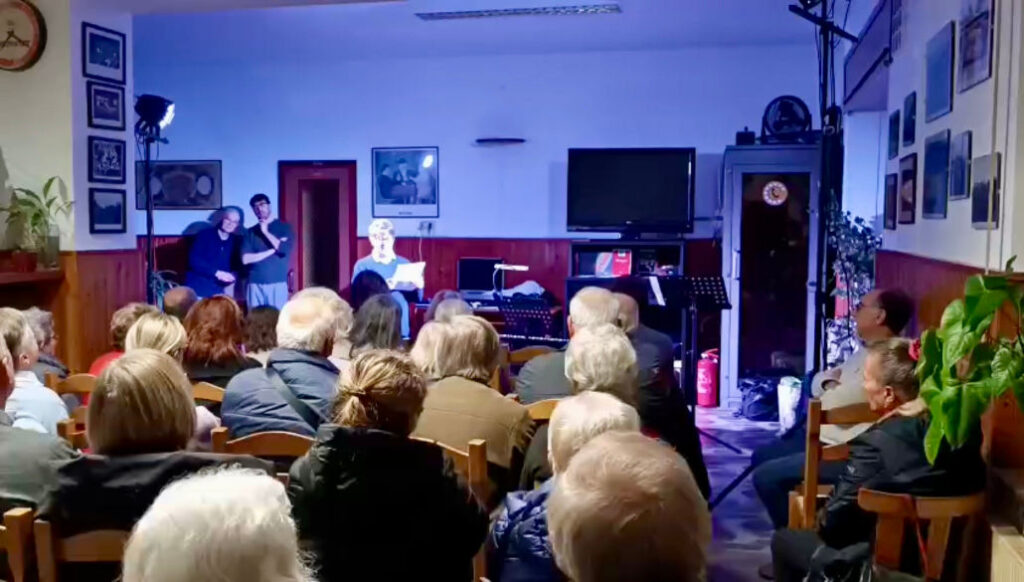 L’incontro si è aperto alle 18 con la rappresentazione teatrale e musicale “Voci delle stelle”, portata in scena dal Gruppo Teatro Sagrado. Sul palco il M° Giuseppe Minin (tromba e flicorno) e il M° Valerio Simonini (tastiera) hanno accompagnato la voce recitante di Fabio Miotti.
