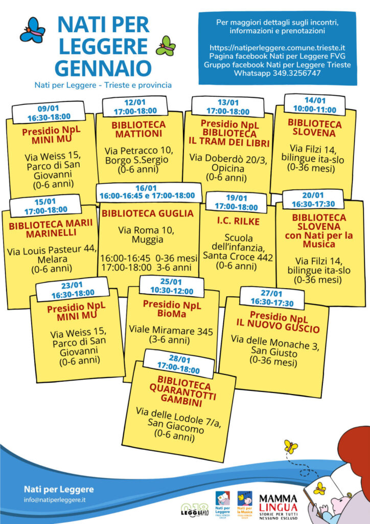 Per informazioni sulle iniziative di Nati per Leggere Triestemob. 349 3256747 (esclusivamente con messaggio, preferibilmente Whatsapp)
