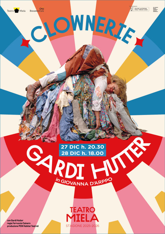 Sabato 27 dicembre alle ore 20.30 e domenica 28 dicembre alle ore 18.00 va in scena Giovanna D’ArpPo, con Gardi Hutter, regia di Ferruccio Cainero. Un capolavoro del teatro clown internazionale. Una lavandaia trasognata e squinternata che sogna grandi azioni eroiche ma che, non trovando nemici degni di lei, trasforma la sua lavanderia in un grottesco campo di battaglia. Le storie di Giovanna/Hanna – senza parole, ma piene di spavalderia – sono metafore tragicomiche della nostra lotta – senza speranza – per la beatitudine. In tutto questo trambusto, c’è solo una certezza: Hanna non è grassa… lo specchio è troppo piccolo. Gardi Hutter è considerata a livello internazionale un modello per il teatro clown e da oltre quarant’anni gira mezzo mondo portando i suoi spettacoli nei luoghi più disparati: dai teatri stabili alle ex-fabbriche, dalle sale da concerto ai centri culturali, dai festival alle favelas. Nei suoi spettacoli crea dei piccoli universi assurdi in cui i suoi personaggi combattano con grande coraggio – ma invano – alla ricerca della felicità. La loro situazione tragicomica viene esposta in modo spietato e crudele, offrendo così al pubblico il massimo di divertimento.Sabato 3 gennaio alle ore 17.00 la rassegna esce dal teatro con WOOW! – Parata itinerante, che prenderà il via davanti al Teatro Miela per attraversare le vie del centro cittadino. Una coppia di clown viaggiatori, a bordo di un bizzarro veicolo di rame e metallo, animerà la città con musica, danza, acrobazia e comicità fisica.
