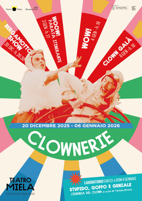 Dal 20 dicembre al 6 gennaio il Teatro Miela di Trieste ospita CLOWNERIE – teatro per tutti! Una rassegna dedicata al clown contemporaneo, alla comicità fisica e al teatro senza parole, pensata per un pubblico di tutte le età.