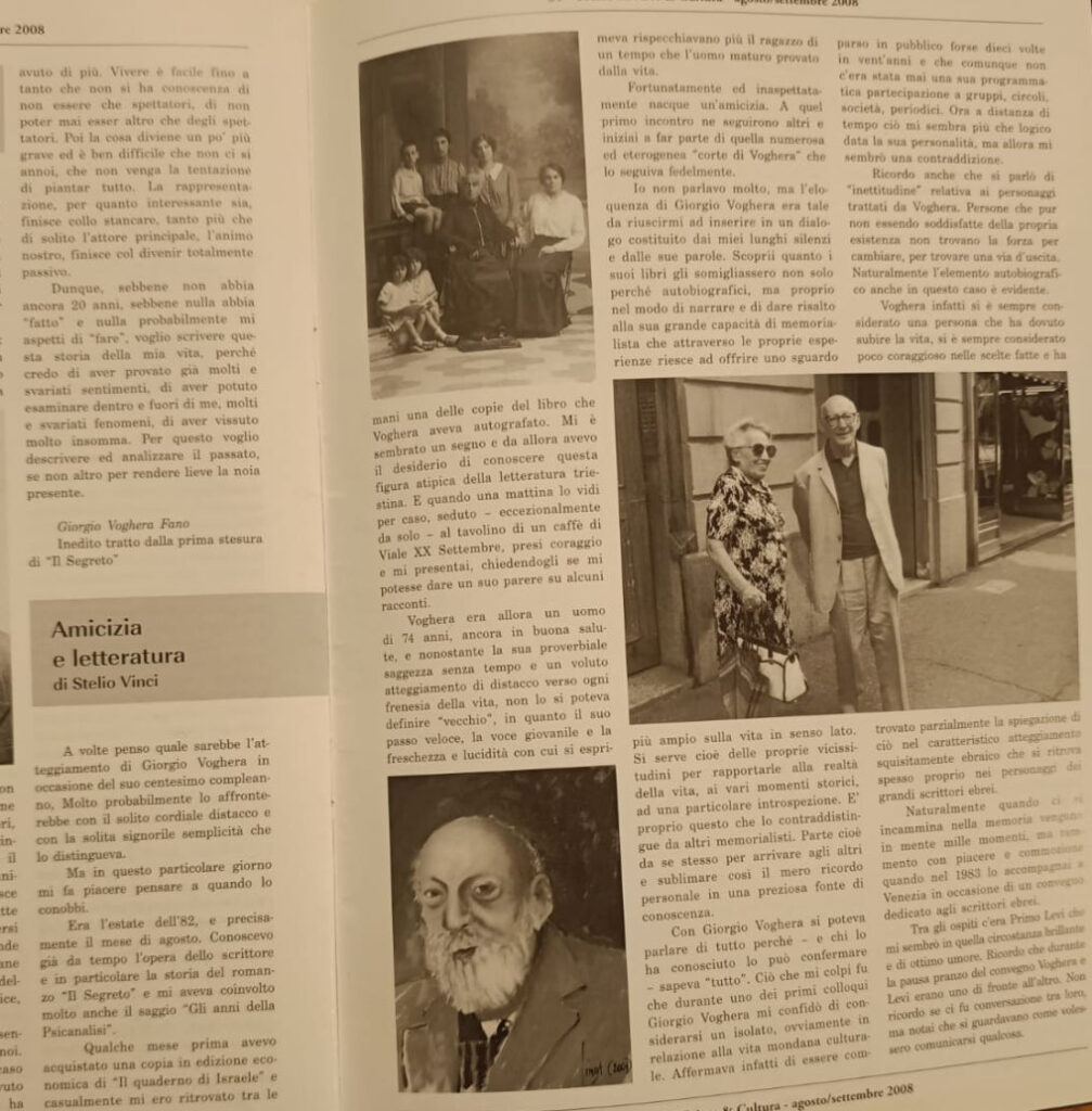 Non ci siamo mai dimenticati di te, sei sempre stato nel nostro cuore e mente, ci siamo ritrovati finalmente dopo tanti anni e come sempre il perno per incontrarci sono stati i tuoi scritti caro “Nini”, il Giorgio Voghera degli “Anni della Psicanalisi”, dei “Quaderni di Israele” e oggi, questo pomeriggio, ci sarà la ri presentazione dopo tantissimi anni de “Il Segreto” edito per i tomi “Libreria San Marco” con “Asterios Editore”, sì Nini, il tuo Caffè preferito! Contento vero? Ah certo, dici che sei anche contento di sapere che forse ci sarà Claudio (Magris) e Elvio (Guagnini) assieme per te ed anche Stelio (Vinci).Tra parentesi, vi sono alcune cose che, essendo tuo cugino, avrei da raccontare proprio su questo libro…come dici? Certo che che ce lo ricordiamo, ti abbiamo fatto una promessa, quindi molte cose di ciò che sappiamo, resterà un… segreto per sempre.