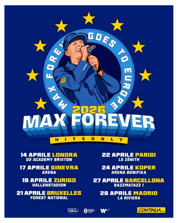 Arriva dunque l’annuncio del suo primo tour europeo (prodotto da Vivo Concerti) MAX FOREVER – GOES TO EUROPE 2026, che per il mese di aprile lo porterà in giro per l’Europa con tappa all’Arena Bonifika a Capodistria.
