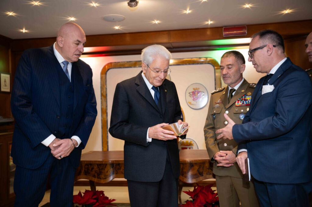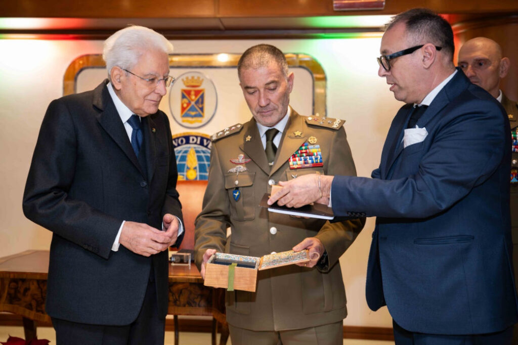L’incontro è avvenuto a Roma presso la sede del Comando Operativo di Vertice Interforze in occasione del collegamento in videoconferenza per gli auguri ai contingenti militari italiani impegnati nei teatri di operazioni internazionali, alla fine del collegamento il Presidente Mattarella e il Ministro della Difesa Guido Crosetto, accompagnati dal Generale di Corpo d’Armata Giovanni Iannucci (Comandante COVI) che, durante lo scambio degli auguri, ha omaggiato il Presidente Mattarella di un manufatto realizzato dalla Fondazione Scriptorium, si tratta della replica in fac-similare di un Libro d’Ore – MS 198 della Biblioteca Guarneriana, e durante la consegna il dott. Roberto Giurano – Presidente Scriptorium Foroiuliense, ha avuto modo di presentare l’opera al Presidente Mattarella e di fare anche una breve presentazione delle attività della Fondazione.