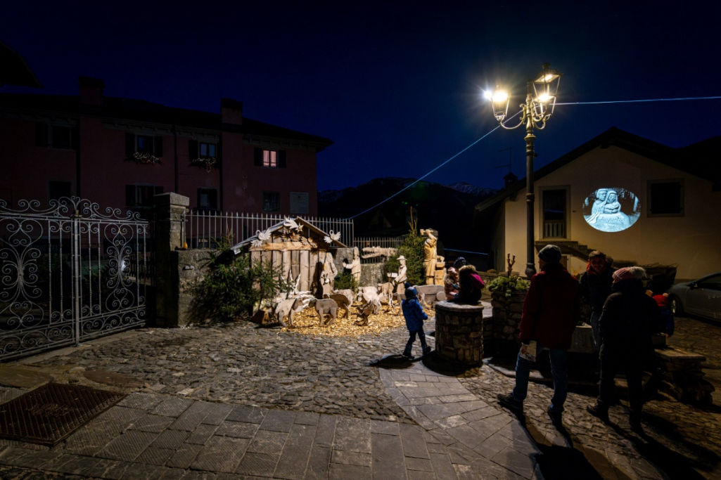 Punto di partenza ideale è il Presepe che ha campeggiato in Piazza San Pietro nel 2022: oggi risplende nella piazzetta sotto il Municipio, con una ventina di statue a grandezza naturale scolpite nel cedro, disposte su 116 metri quadrati, illuminate da 50 punti luce.