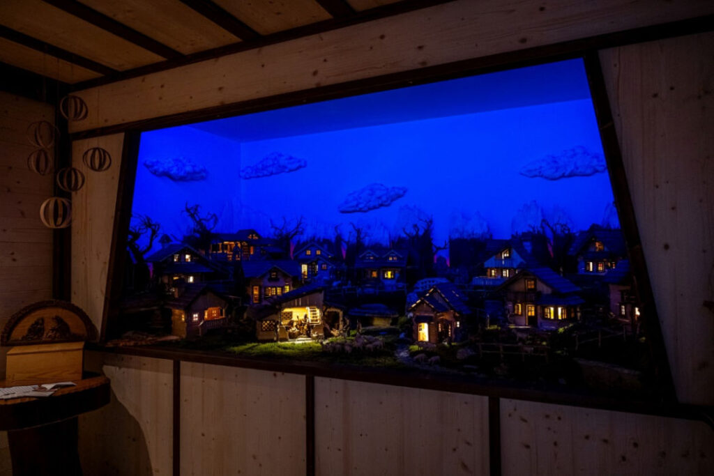 Riproduce in miniatura gli usi e i costumi tradizionali del paese, con l’alternarsi del giorno con la notte, le figure in movimento, l’acqua che scorre nei ruscelli, decine di scene realizzate con minuzia filologica che descrivono la vita e i ritmi di un tempo.