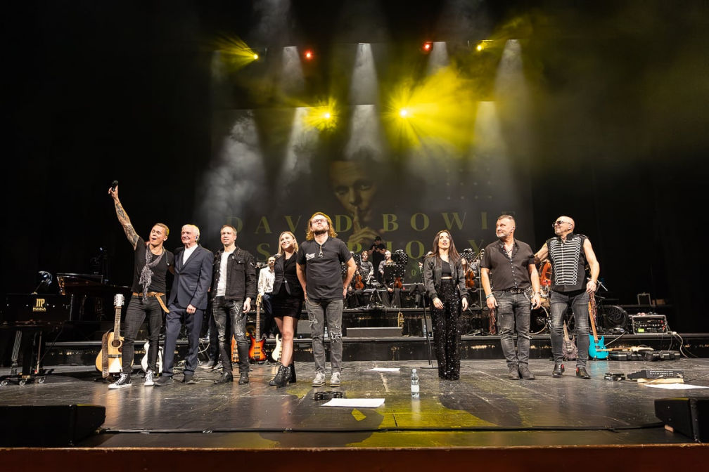 Una musica travolgente (oltre due ore ininterrotte di scaletta con tutte le hit più famose, da Space Oddity a China Girl, da Heroes a Under Pressure, Let’s Dance, Ashes to Ashes, Rebel Rebel, Absolute Beginners…), che ha letteralmente “esploso” tutta la ricchezza armonica, ritmica e timbrica dei brani di Bowie, musicista dalle molteplici ispirazioni e sperimentazioni, qui restituito in modo del tutto sorprendente grazie all’orchestra (un equilibrato organico di archi e fiati) e alla band internazionale di Devinne, musicista ceco di origini tedesche, riconosciuto dalla critica e dagli stessi storici collaboratori di Bowie come uno dei migliori interpreti oggi della sua musica.