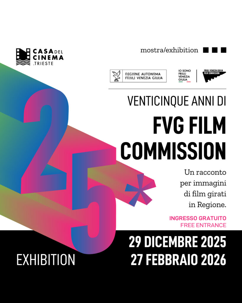 La Casa del Cinema di Trieste inaugura la mostra fotografica “25 anni di FVG Film Commission” lunedì 29 dicembre alle 18.30 nei propri spazi di piazza Duca degli Abruzzi 3 a Trieste. Un racconto per immagini di film girati in regione”, visitabile dal 29 dicembre 2025 al 27 febbraio 2026 ad ingresso libero dalle 9 alle 18 dal lunedì al venerdì.