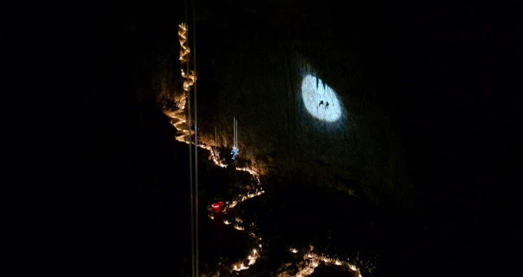 Gli speleologi della Commissione Grotte Eugenio Boegan della S.A.G. proporranno al pubblico un pomeriggio di grandi emozioni e festa, calandosi in costume dalla volta della Grotta Gigante per raggiungere gli spettatori, radunati per l’occasione 100 metri più in basso, sul fondo della Grande Caverna.