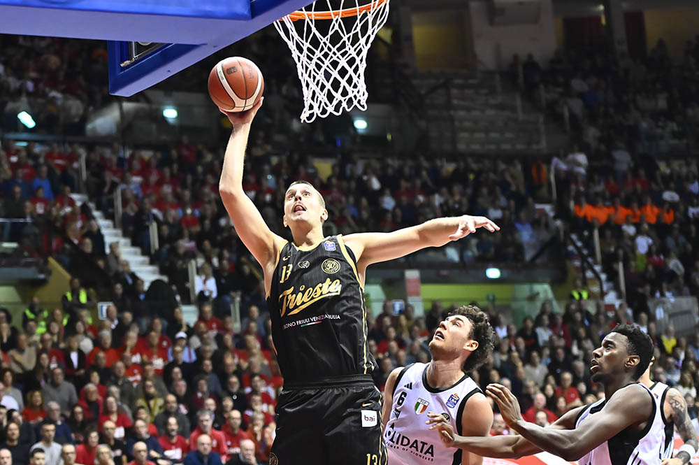 L’ultima partita del 2025 si chiude con una sconfitta per Trieste, che davanti a un pubblico caldissimo di 6019 spettatori presenti al PalaTrieste lotta fino all’ultimo possesso contro la Virtus Bologna ma deve arrendersi 66-74.