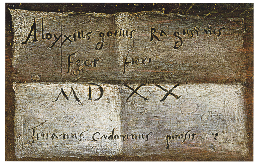 L’opera marchigiana commissionata dal mercante di Ragusa Alvise Gozzi – capolavoro della Pinacoteca Civica “Francesco Podesti” ad Ancona – è caratterizzata da una sorta di doppio paesaggio: oltre a una vegetazione che ricorda il panorama dell’entroterra veneto nella finestra che si apre sulla sinistra, centrale è la vista di un tratto di mare e, all’orizzonte, il profilo di una città che sorge dall’acqua: chiaro riferimento alla Serenissima e di fatto prima rappresentazione della laguna veneziana nella pittura modera.