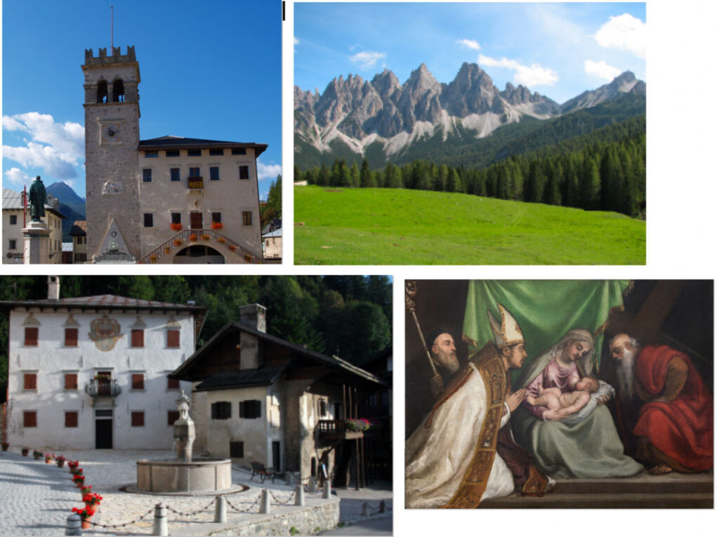 A Pieve di Cadore invece, il paese dove Tiziano era nato e dove, secondo il pittore Tizianello suo discendente e biografo, avrebbe ordinato “morendo.. di essere sepolto nella chiesa Arcidiaconale della sua Patria” (“Breve compendio alla vita di Tiziano”, 1662), non restano tombe, ma la Casa natale del XV secolo con la sua tipica e originale struttura – casa museo che torna ad aprirsi al pubblico dopo i restauri e i lavori per l’accessibilità – e “il testamento” forse più intimo, una sorta di omaggio alla famiglia, agli affetti e alla sua terra: la piccola pala conservata nella Chiesa Arcidiaconale di Santa Maria Nascente.
