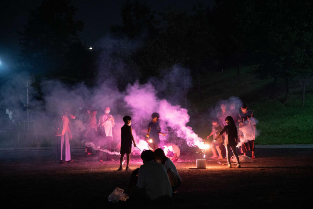 Gli sguardi di Noriko Hayashi e Tomoko Yoneda rileggono periodi e avvenimenti cruciali della storia giapponese recente attraverso un approccio insieme documentaristico e partecipato. Susumu Shimonishi, con una ripresa zenitale e un’immagine in movimento che diventa misura del tempo, riflette sulla continuità e sulle fratture del passato. La vita quotidiana della penisola di Okunoto – ancora oggi sospesa tra tradizione e marginalità – è al centro delle opere di Naoki Ishikawa, allievo di Moriyama. Le celebrazioni e i riti che definiscono il tessuto culturale del Paese emergono nelle fotografie di Keijiro Kai, mentre i video di Miyagi Futoshi indagano la memoria personale e la costruzione dell’identità di genere, attraverso un racconto intimo di ricordi e relazioni.